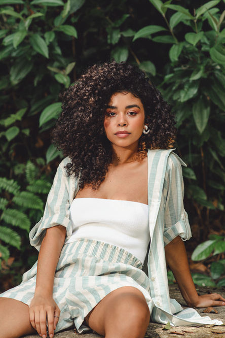 O ensaio foi realizado em um trecho preservado de Mata Atlântica, reforçando a conexão entre o conceito da coleção e o território, e ampliando a narrativa visual proposta.